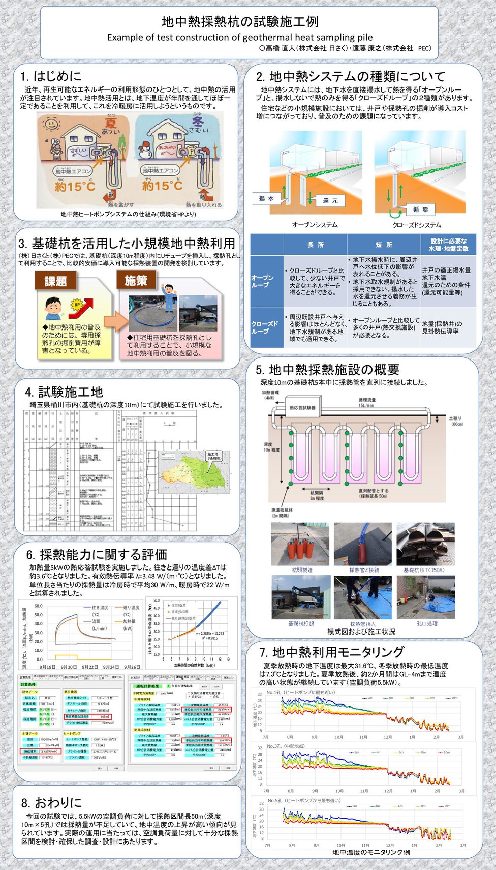 当社では㈱日さく様とともに、一戸建て住宅など比較的小規模な建築物へ向けた地中熱システムの普及促進を目指し、鋼管杭を利用した地中熱交換技術について勉強会を行っています。